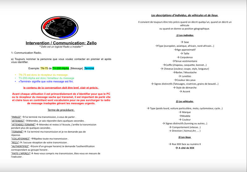 Prise De Patrouille pour la (Exemple : Tn750) à bord d’une (Exemple : 308) (sérigraphie Police / Banalisée) (Exemple : 2) effectif à bord